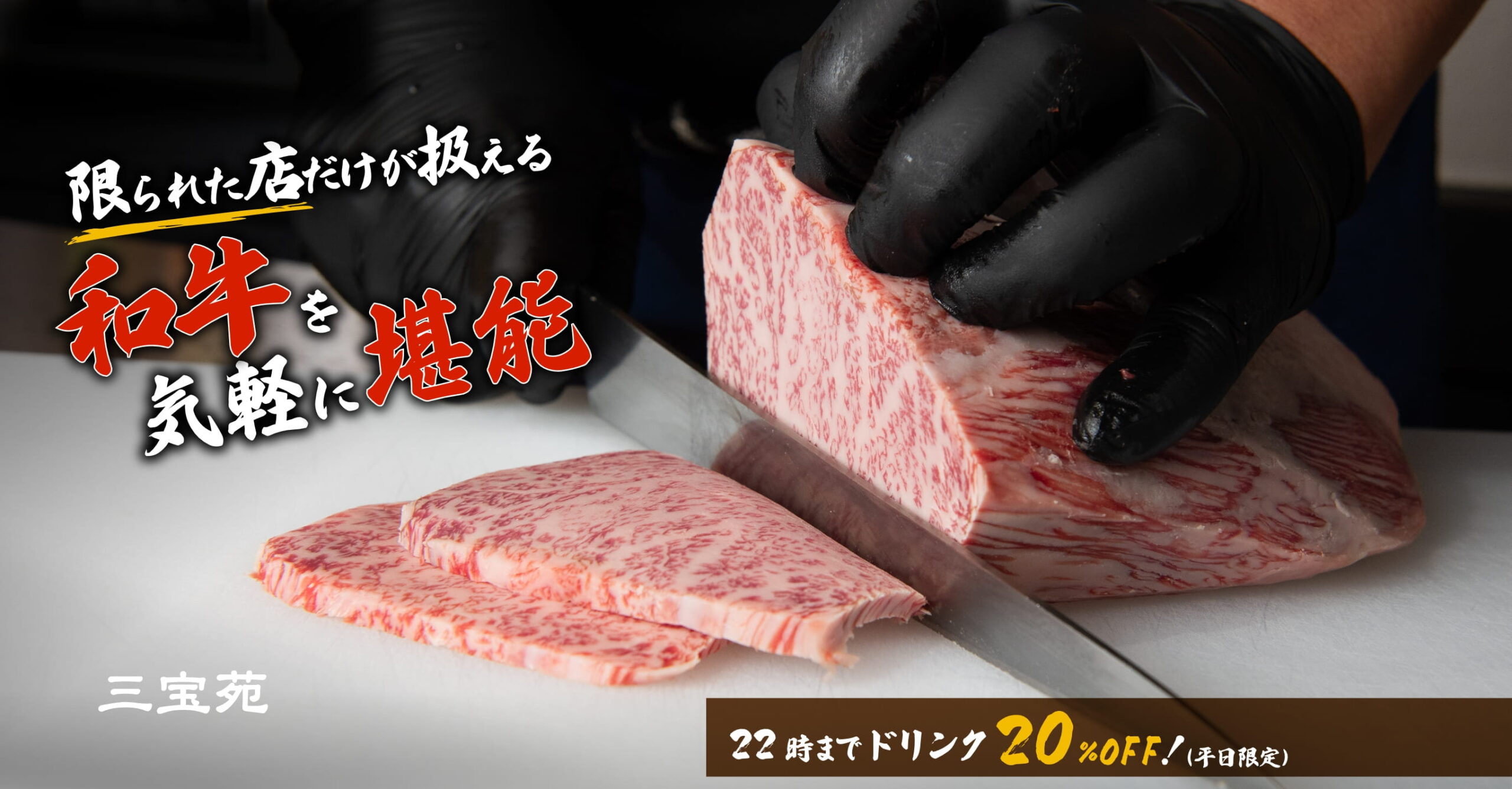 当店では、半世紀以上にわたり地域に親しまれてきた老舗焼肉店「三宝苑」本店の味を受け継ぎ、変わらぬ美味しさをお届けしています。黒毛和牛は、限られた店のみが仕入れられる独自ルートから、産地や銘柄にとらわれず店主が目利きした本当に美味しいお肉だけを使用しています。