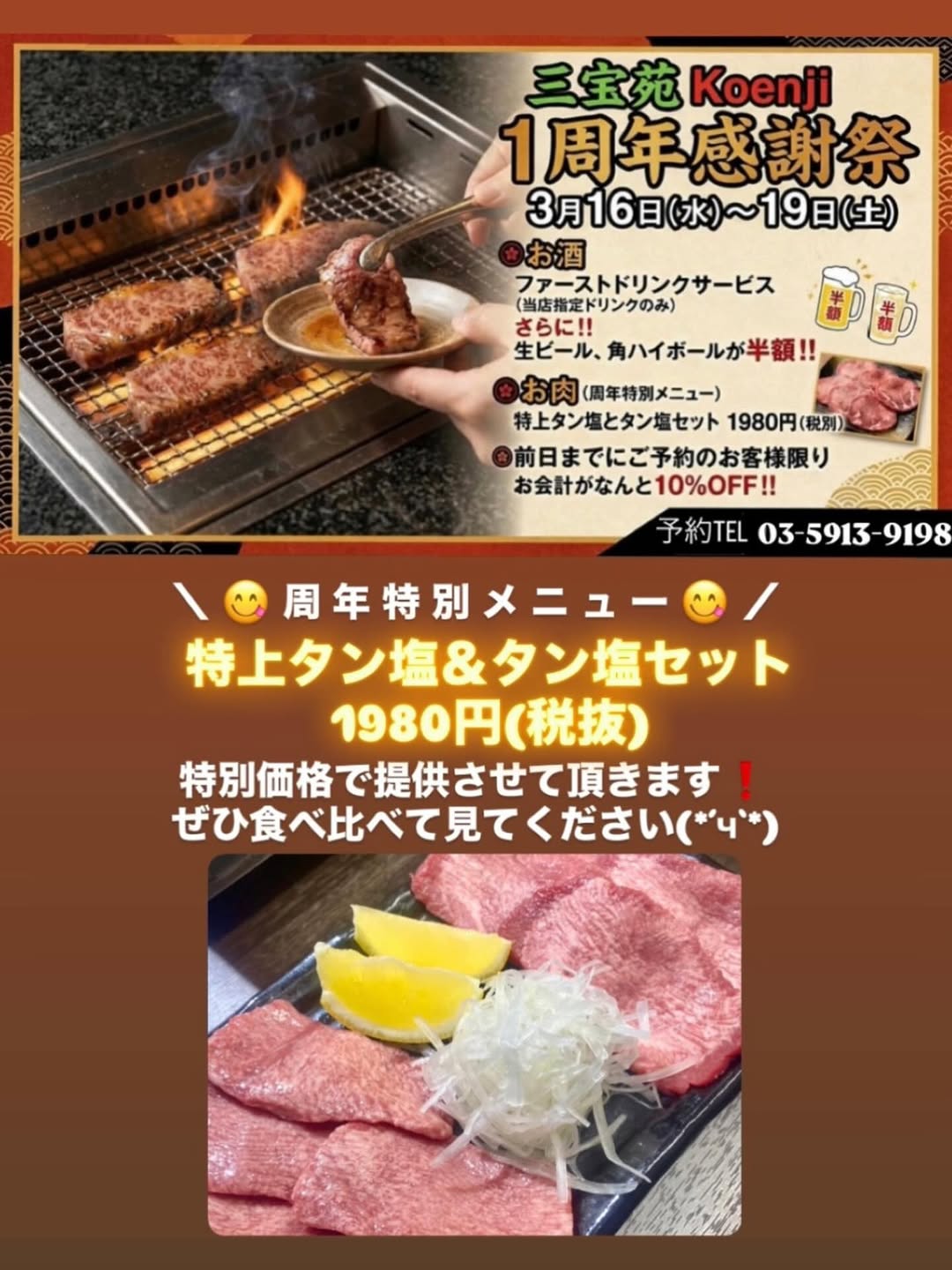 #高円寺 #三宝苑 #焼肉 #周年 #特別価格