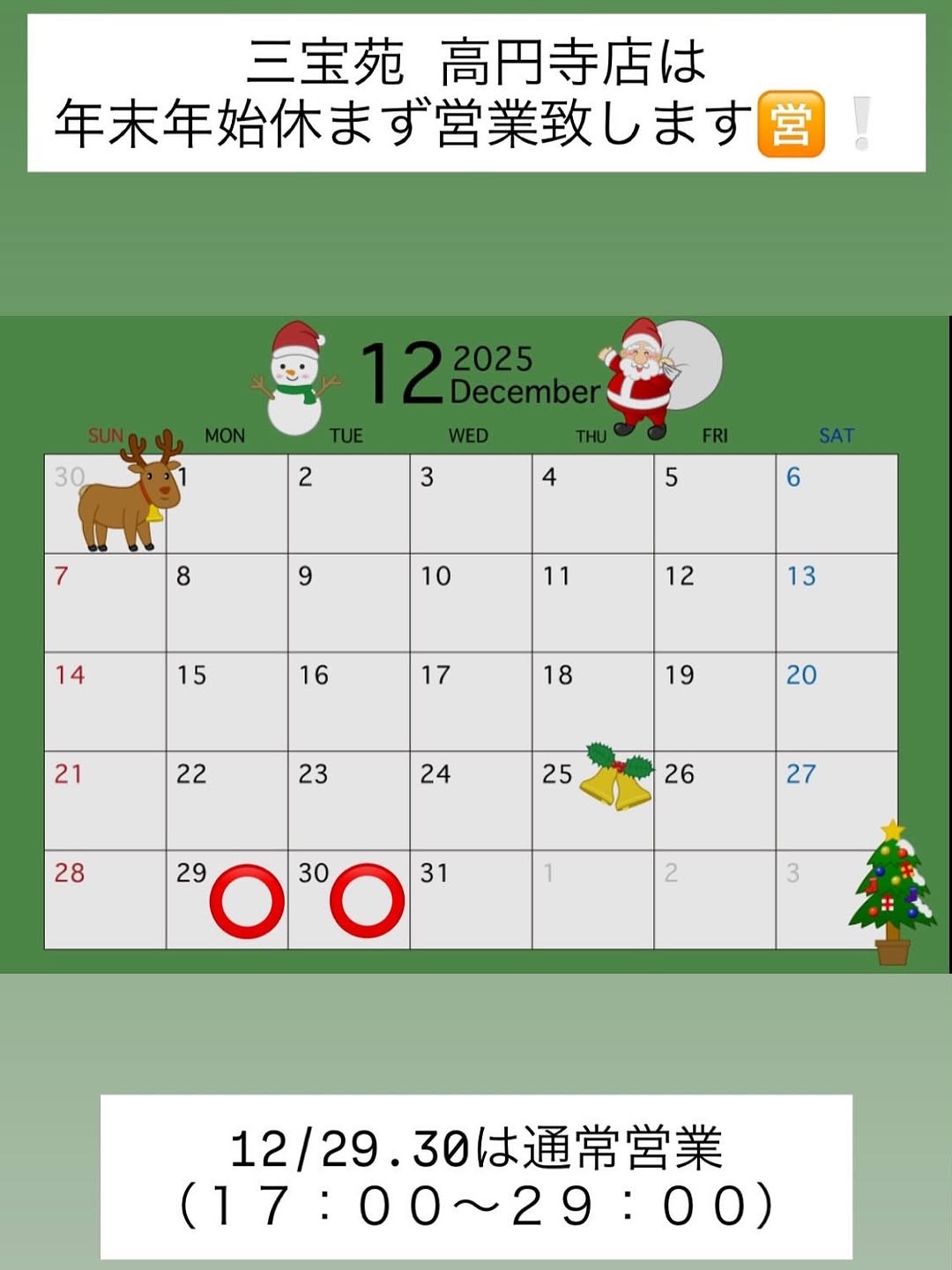 いつも三宝苑 高円寺店をご利用いただき有難うございます